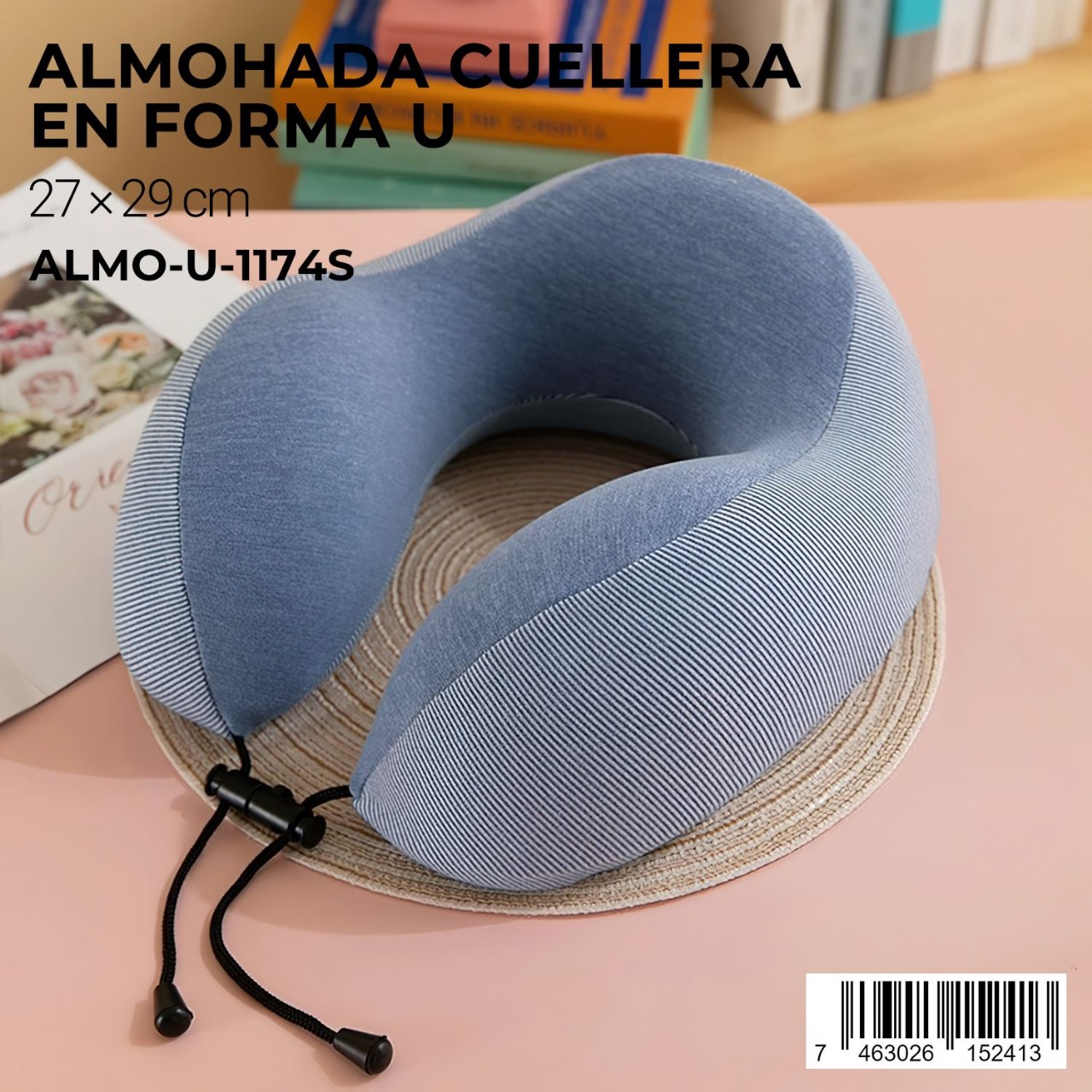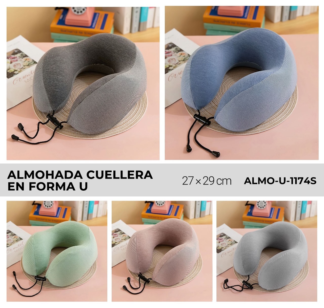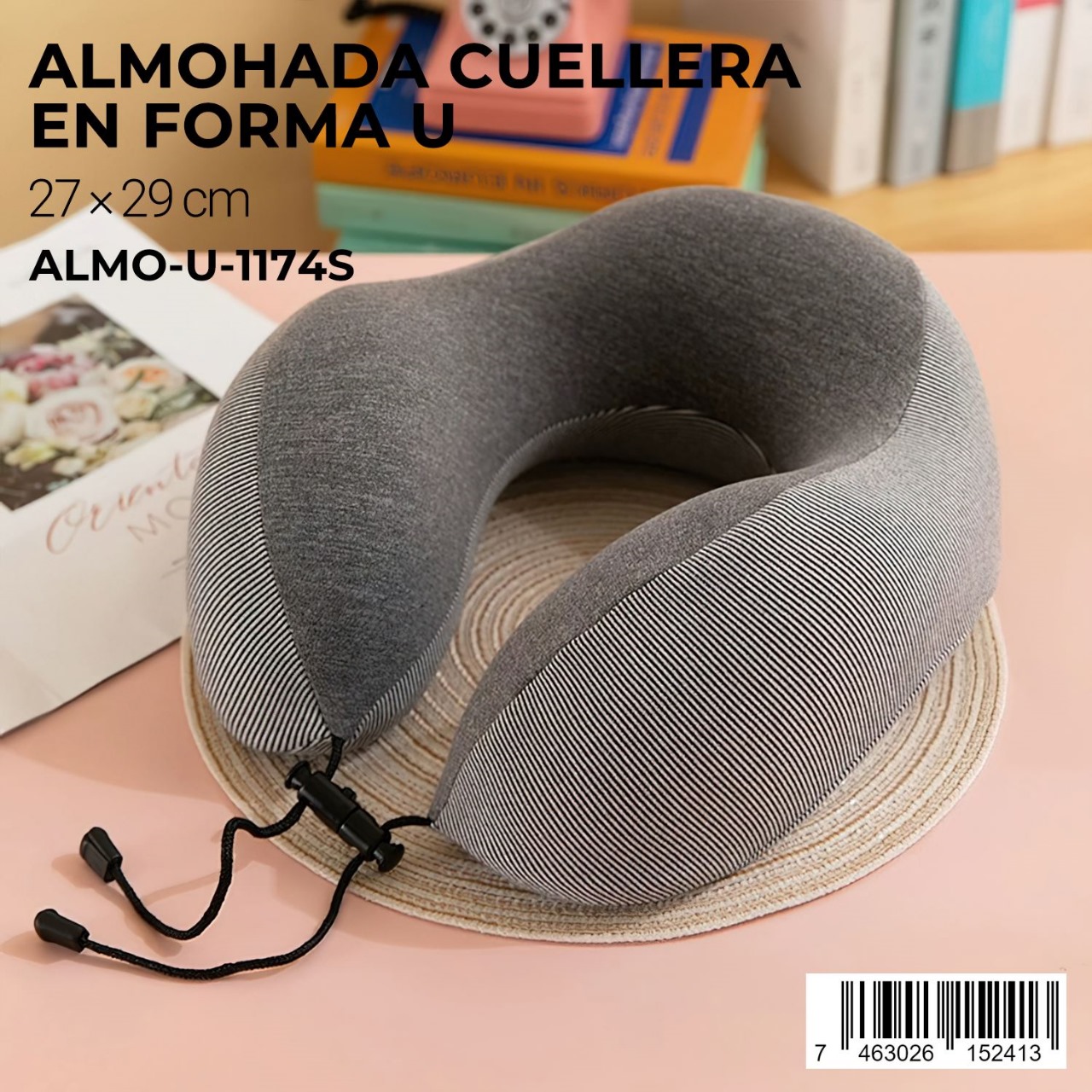 Almohada cuellera en forma de U, diseñada para brindar soporte ergonómico y comodidad durante viajes, descanso o trabajo. Fabricada con materiales suaves y resistentes, cuenta con ajuste mediante cordón para un mejor ajuste al cuello.