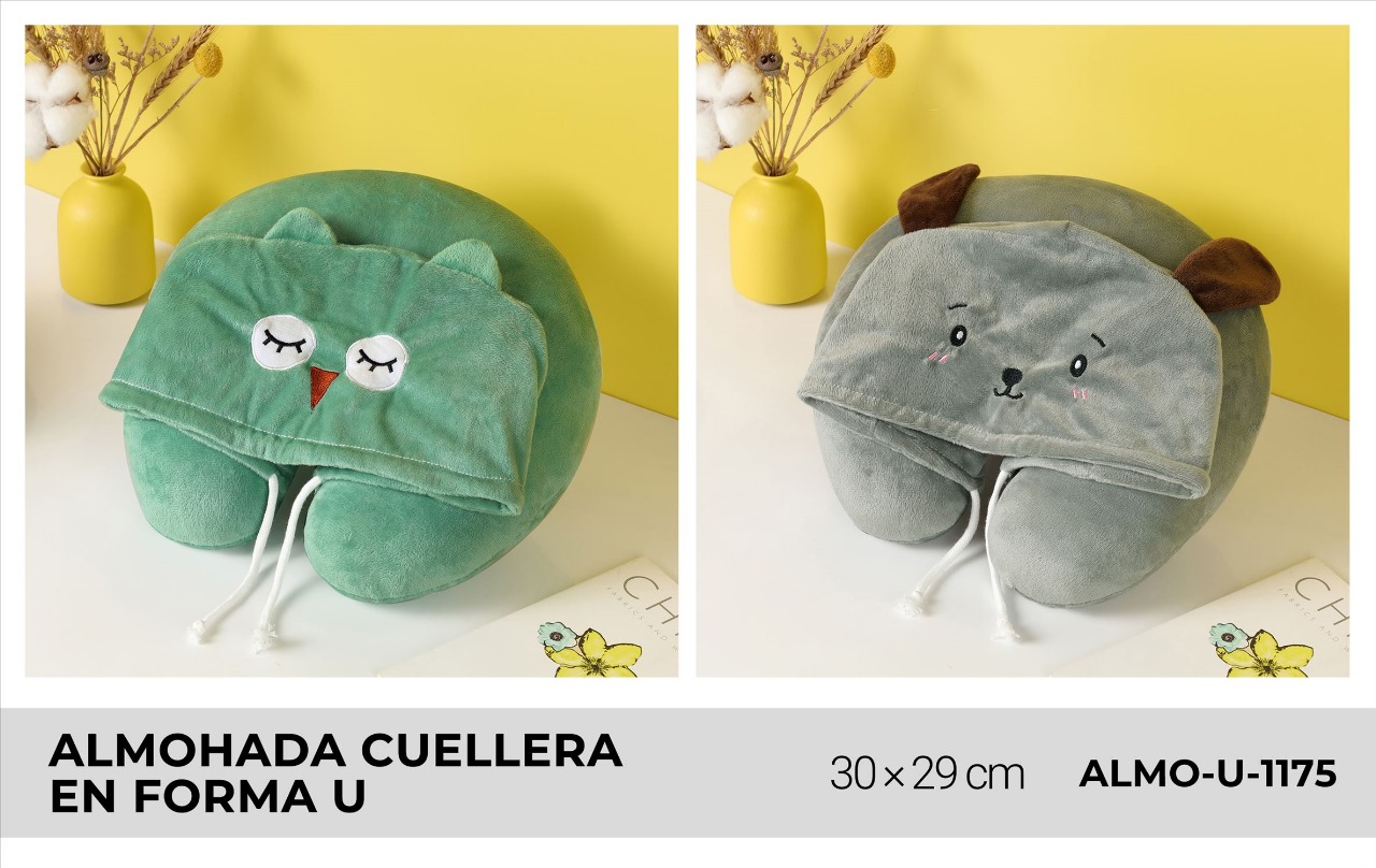 Disfruta de mayor comodidad y descanso en tus viajes o en casa con esta suave almohada cuellera en forma de U. Su diseño con capucha y detalles divertidos de animalitos proporciona soporte ergonómico al cuello y al mismo tiempo un estilo tierno y acogedor. Perfecta para usar en avión, auto, oficina o simplemente para relajarte en casa.