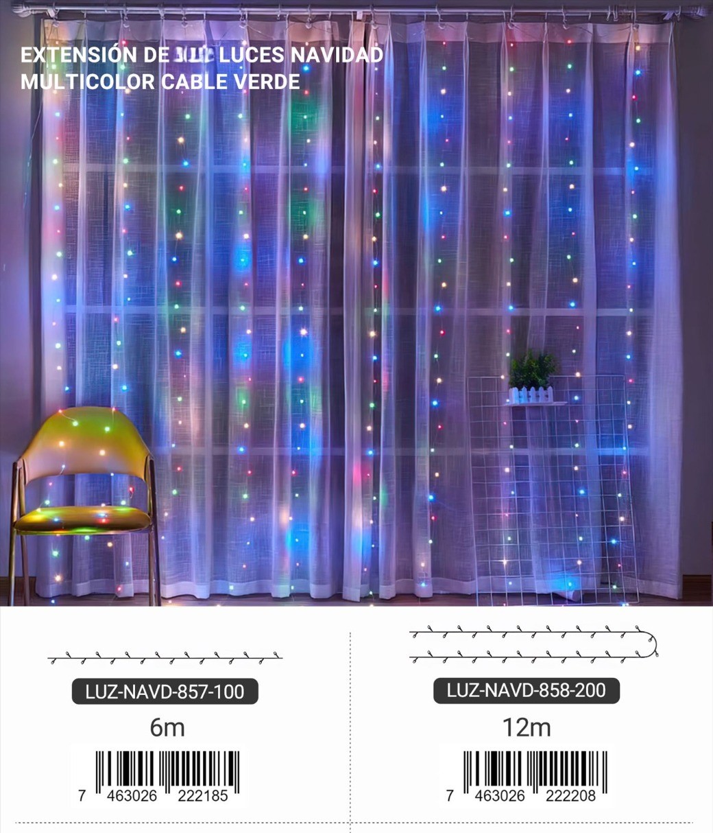 Disponible en 6 metros de 100 luces y 12 metros de 200 luces
