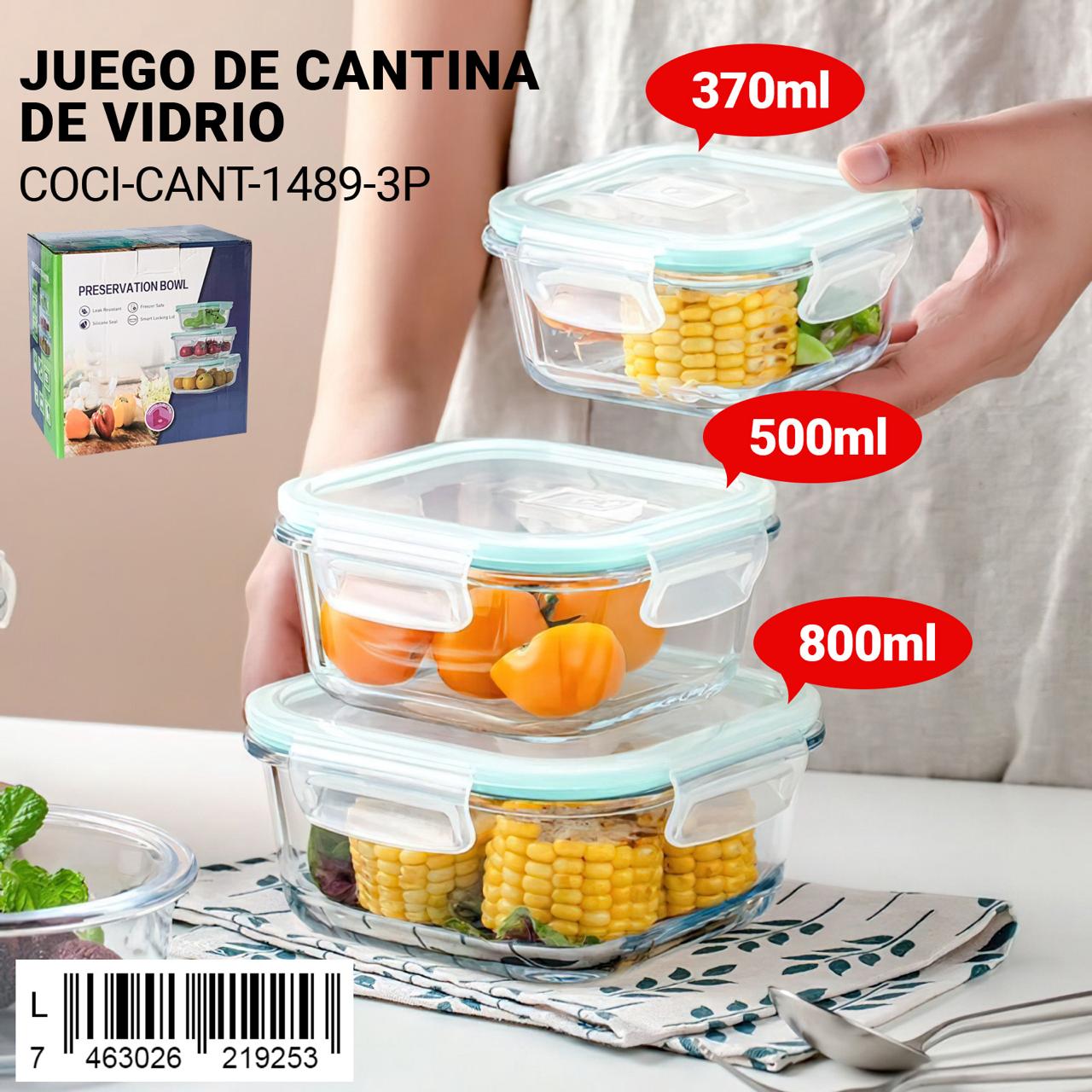 Organiza y conserva tus alimentos de forma práctica y segura con este juego de cantinas de vidrio con tapas herméticas. Fabricadas en vidrio resistente al calor y al frío, ideales para almacenar, calentar o transportar tus comidas. Su tapa con sellado de silicona evita derrames y mantiene la frescura de los alimentos por más tiempo.