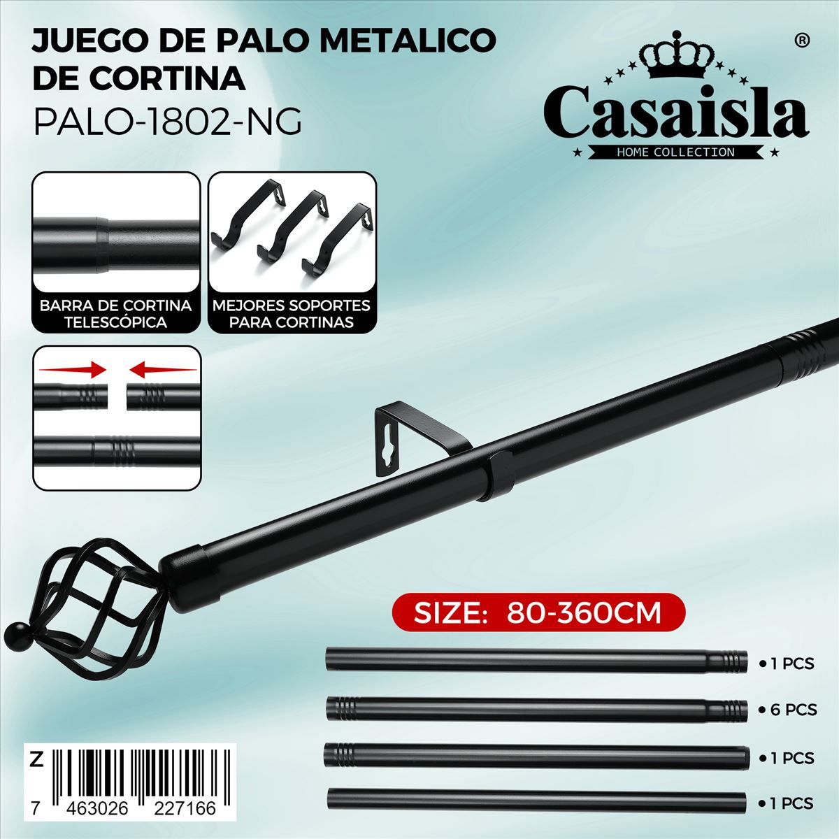 Este juego de barras metálicas para cortinas combina resistencia, funcionalidad y versatilidad. Incluye 9 barras de 40 cm cada una, que pueden unirse fácilmente para alcanzar diferentes longitudes según la necesidad: desde 80 cm hasta un máximo de 360 cm. Su sistema telescópico permite un ajuste sencillo y seguro, mientras que los soportes metálicos reforzados brindan estabilidad y durabilidad. Ideal para instalar en ventanas de distintos tamaños y estilos de cortina.