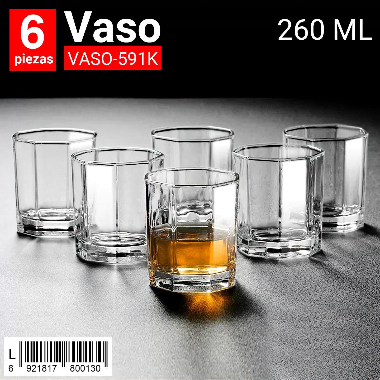 Vaso de vidrio con diseño clásico y elegante, ideal para servir bebidas como whisky, jugos o agua. Su capacidad de 260 ml es perfecta para disfrutar de tus bebidas favoritas con estilo y comodidad.