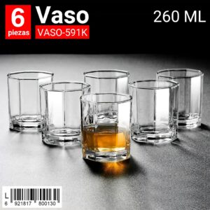 Vaso de vidrio con diseño clásico y versátil, ideal para servir una gran variedad de bebidas frías o calientes. Su capacidad de 310 ml es perfecta para uso diario y para disfrutar de tus bebidas favoritas con estilo.